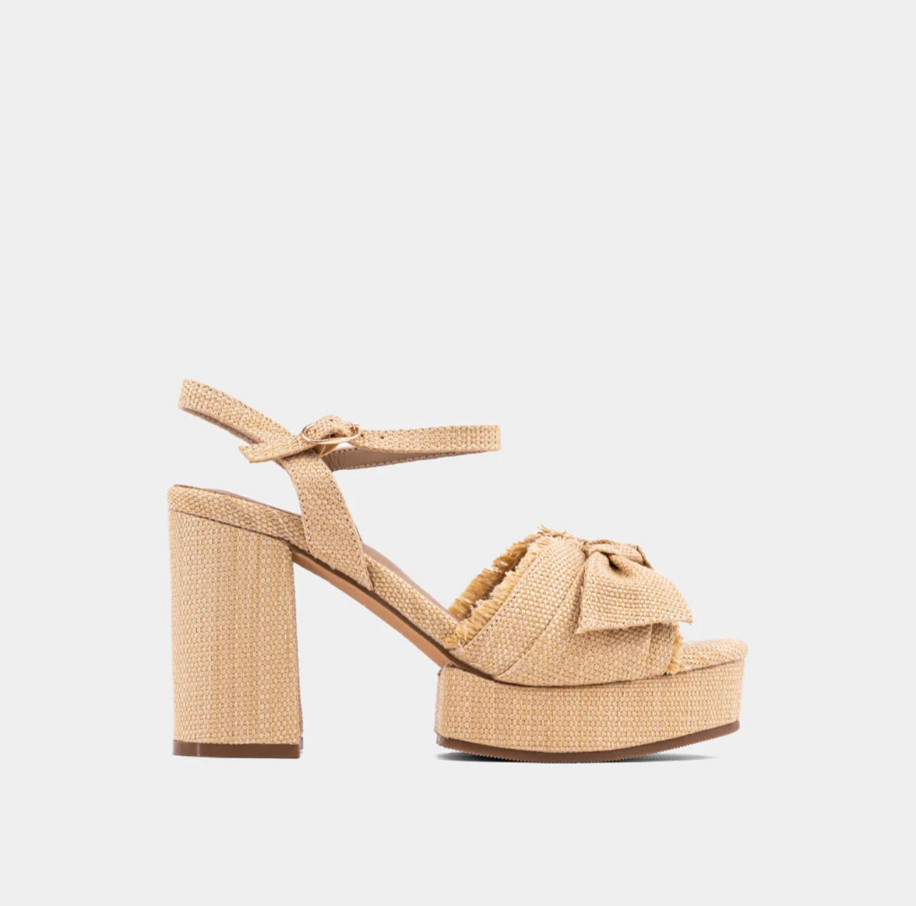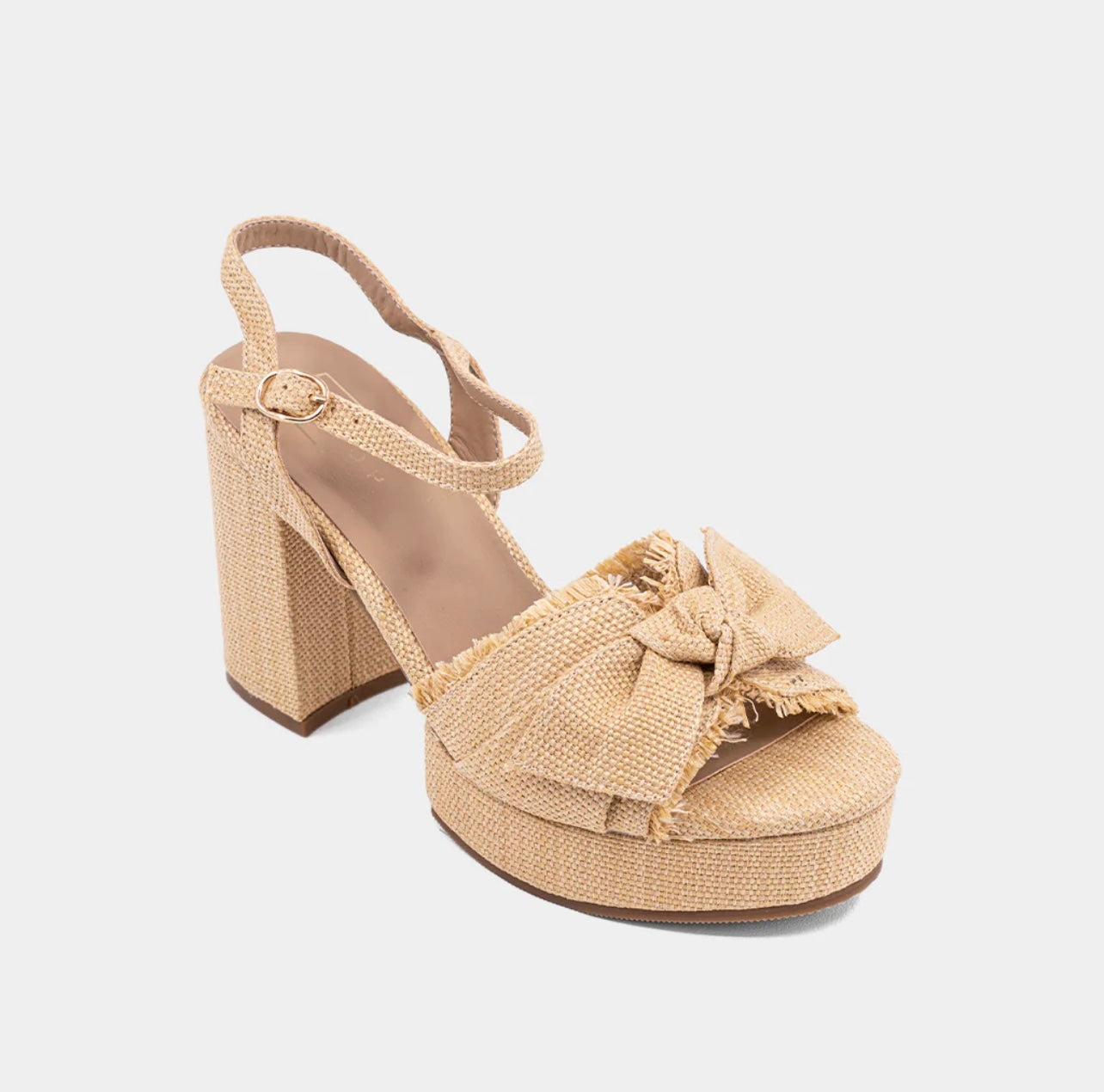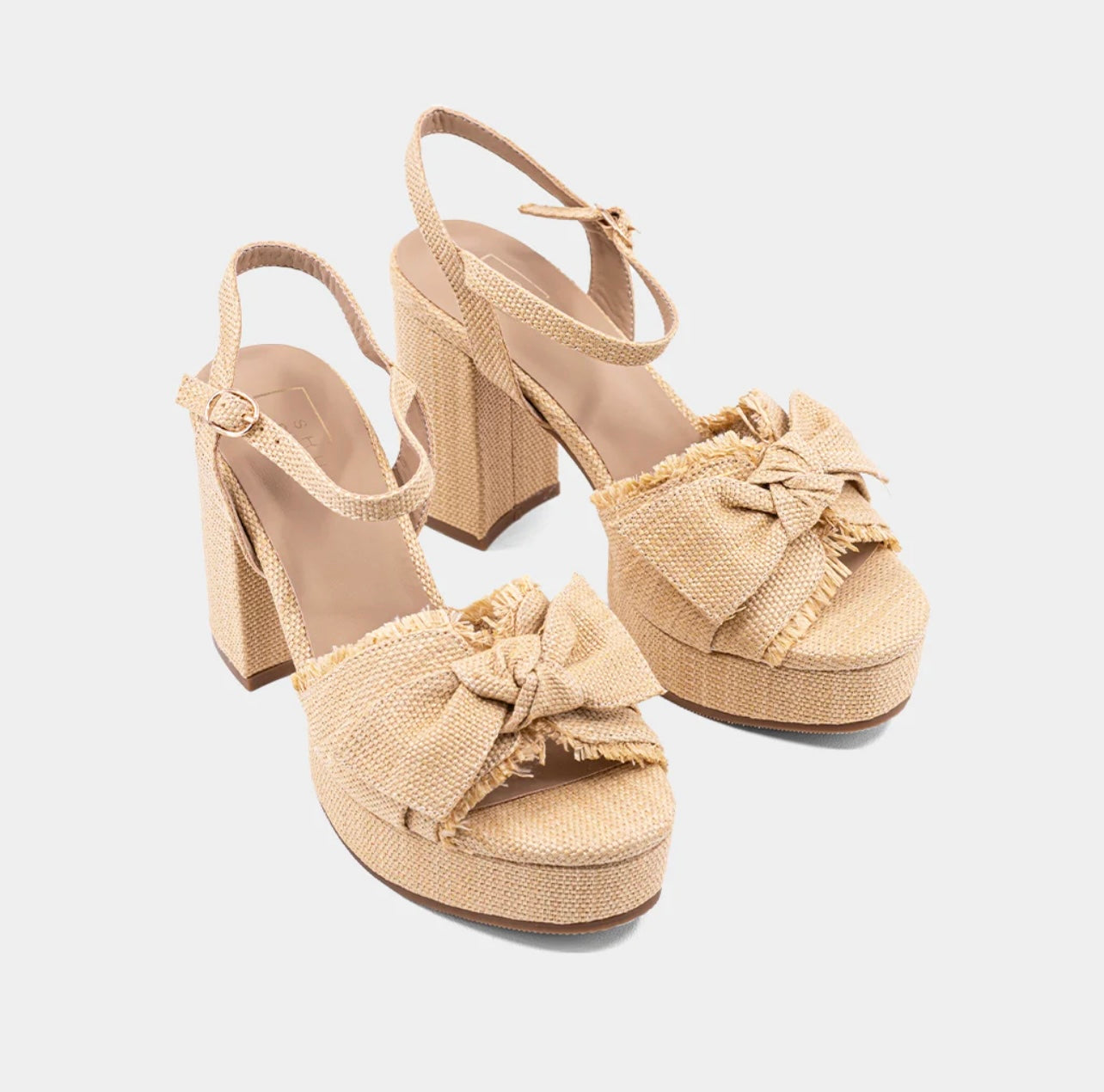Timeless and effortlessly chic, our Cabana in Cancun heels in Natural brings a fresh, earthy vibe to your wardrobe. The woven-texture upper and frayed bow give it a relaxed yet sophisticated feel, while the elevated block heel and platform provide the perfect lift. Designed for comfort and style, this sandal is your warm-weather essential!