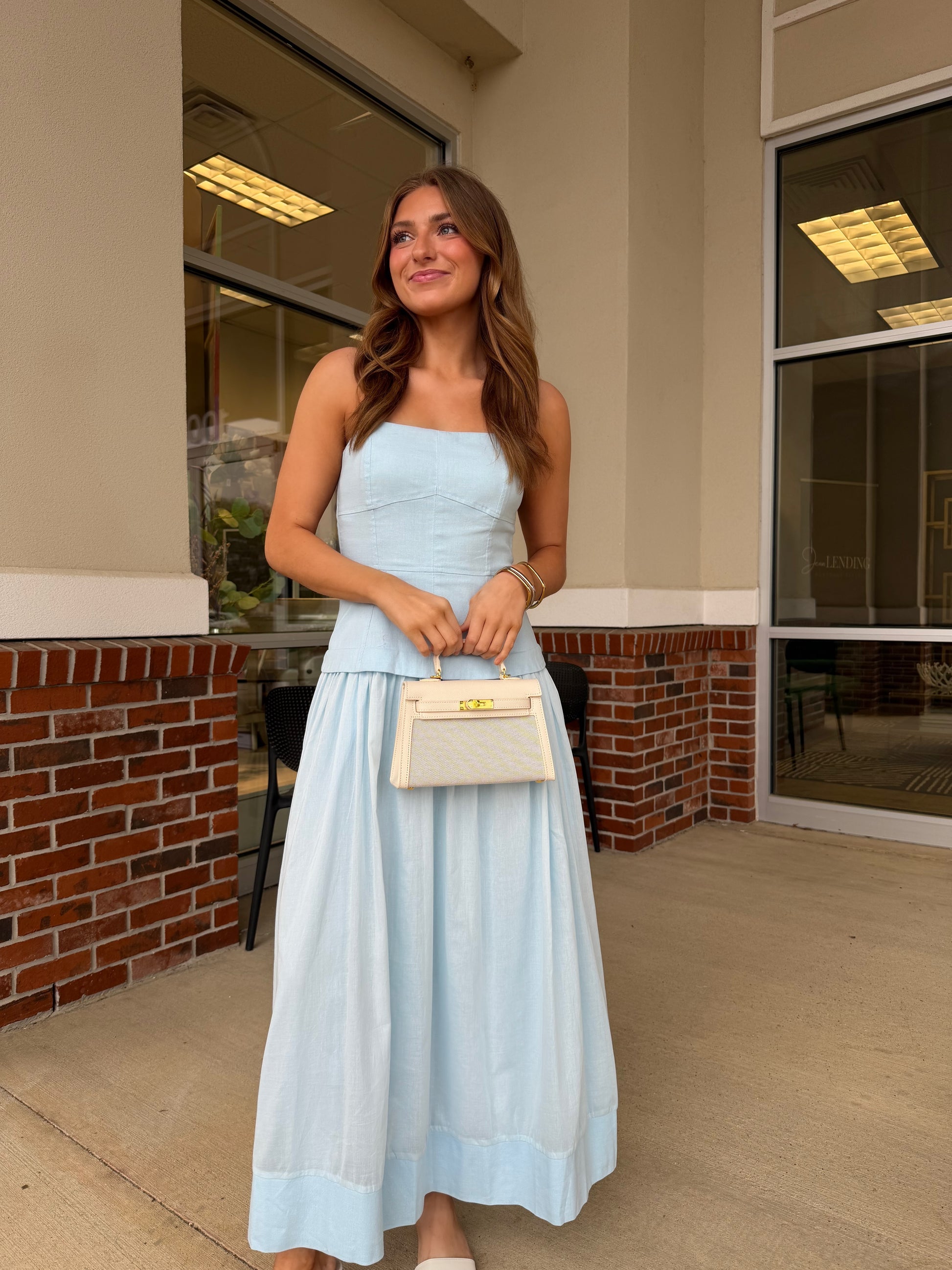 The Maebe Midi is a strapless corset midi dress featuring a fully lined construction. This design enhances comfort while providing structured support, making it suitable for a variety of occasions. Its elegant silhouette complements the figure, offering a refined appearance that is both sophisticated and versatile.